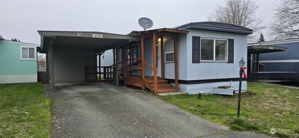 This All Ages park and attractively priced 2 bed 1 bath 1974 mobile features newer vinyl flooring, updated kitchen cabinets and an attractive accent wall in the living room. Home has some newer plumbing in kitchen and bath. There are 2 bedrooms including a primary with its own entrance to the bathroom. All appliances stay including dryer and newer washer. Outside, you'll find a fully fenced yard, a large storage shed and covered sitting area as well as parking for 2 cars and a carport for 1. Manufactured home financing is available. Park approval required.