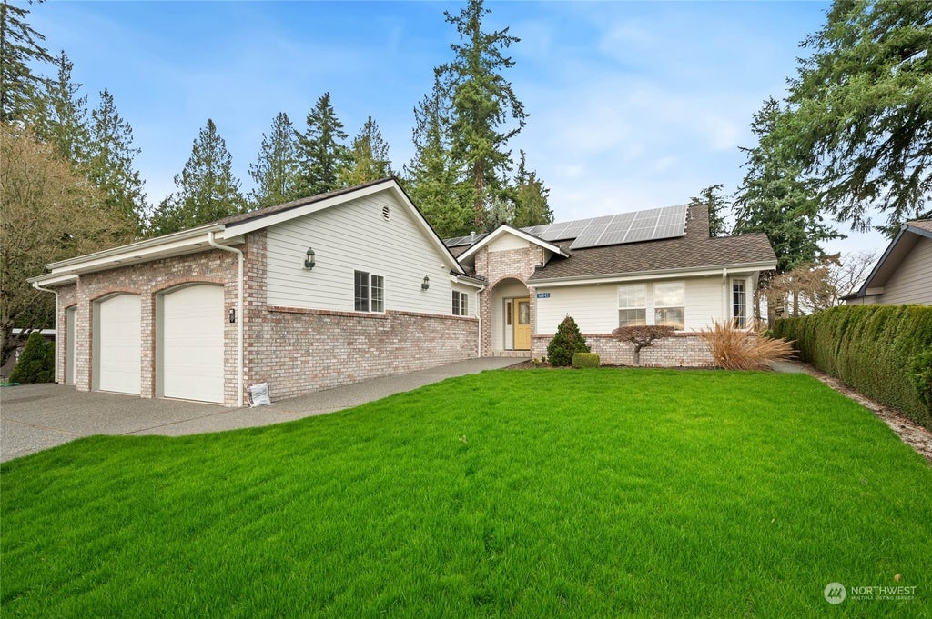 Efficient,warm,and quiet with no electric bill.This one-story home overlooks the 16th hole at Skagit Golf Club.Solar power,LED lighting,in-floor radiant heating,and on-demand hot water make this home an energy star.Discover a beautifully appointed interior featuring high ceilings,hardwood floors,skylights,and a cozy fireplace,creating a warm and inviting atmosphere.Huge chef’s Kitchen with SS appl,granite counters,and walk-in pantry.Laundry with large sink,second refrigerator,cabinets galore! Large bedroom suite with attached 2nd office area and 2 walk-in closets.Terra cotta tile in kitchen,nook,hallways,laundry.Plug in for electric vehicle.Exterior painted 2024,gutter guards.New Presidential Roof in 2022. A great home and neighborhood.