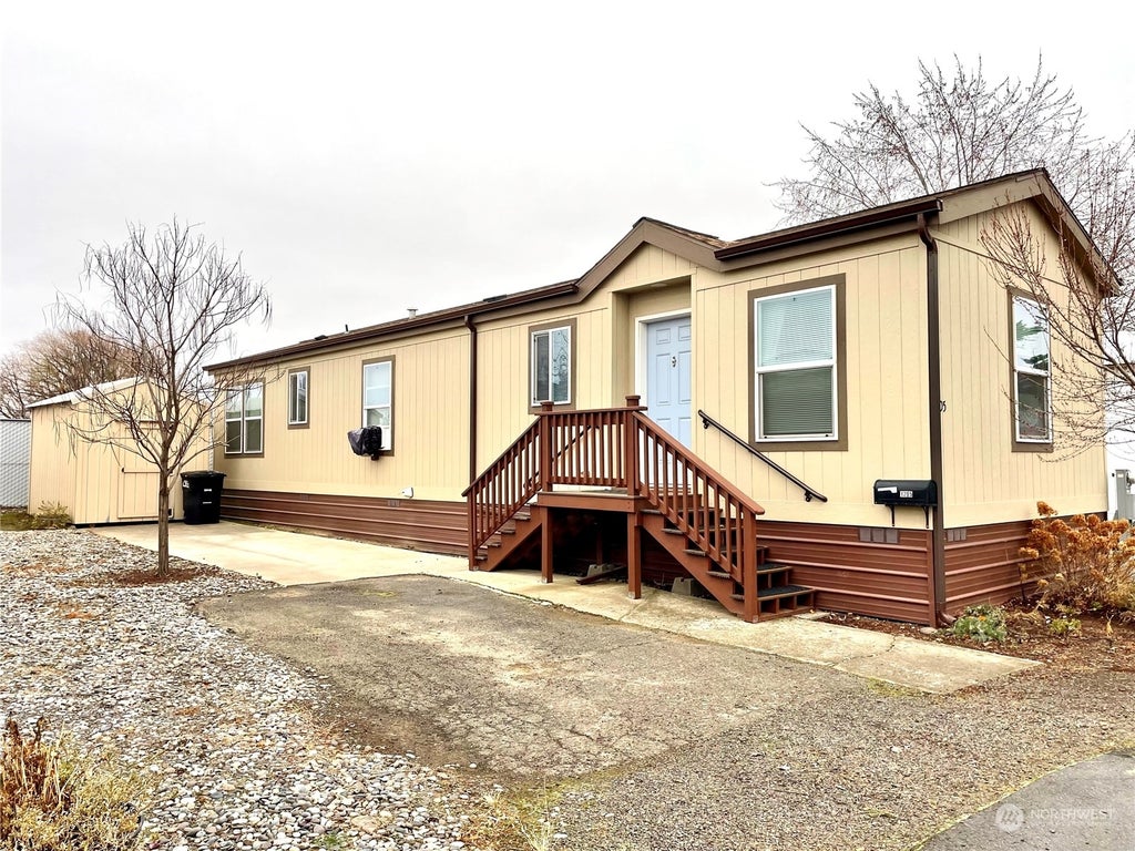 The perfect, affordable, home to downsize to. Built in 2020 it has been lightly lived in. The home features an open living space from large kitchen with all appliances and lots of storage and counter space, to the living room. Home has 2 bedrooms each off the main, full bathroom. Off street parking and a storage shed. This is an easy living home that is close to shopping and restaurants. Park also has a club house.