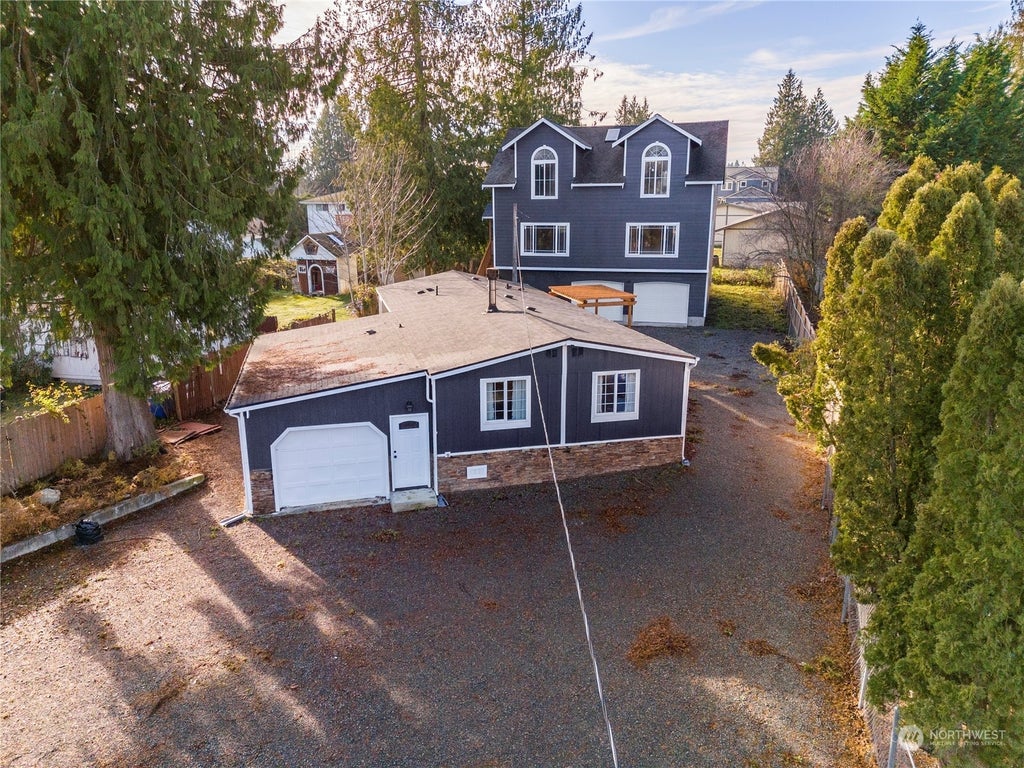 This completely remodeled Inlet Island home offers breathtaking views of beautiful Lake Tapps, a new roof, and garage with storage. Step inside to discover an all-new kitchen with modern appliances and stylish finishes, plus updated bathrooms. Cozy up to the wood-burning stove. A finished living area & utility room with half bath perfect for extra living space. The spacious interior is move-in ready. The garage in back provides 1,872 unfinished square feet, ideal for a workshop, storage & potential ADU conversion in the future. Enjoy ample parking for your RV/Boat & all your vehicles. Plus a private community with lake access & boat launch. Located close to shopping and Costco. Don't miss this opportunity with endless possibilities!