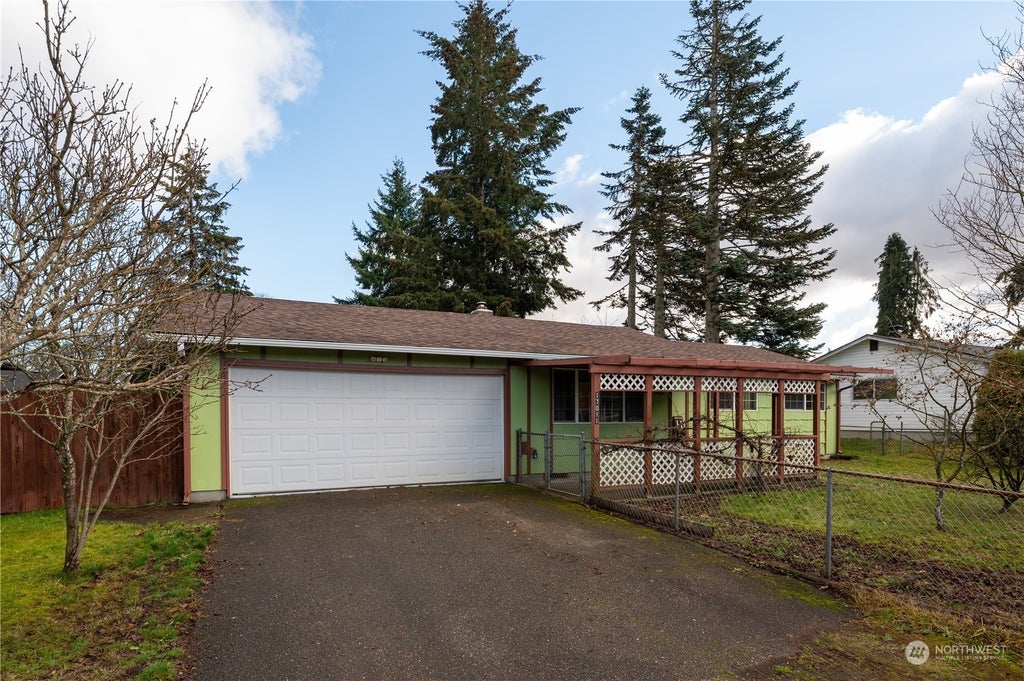 Here is your opportunity for an excellent starter home! This fantastic rambler features new plumbing, new water heater, updated flooring, new dishwasher & updated bathroom. The primary bedroom has convenient access to the bathroom, a galley-style kitchen w/dining area & laminate flooring. You'll enjoy the cozy living room with hardwood floors & a wood fireplace that warms the home. There is a spacious laundry room/bonus area that could serve as a pantry. New fence & fire pit area in the back yard with ample space for gardening & a large storage shed. Both the front & back of the house feature covered patios, perfect for outdoor relaxation. Situated on a dead-end street. Great proximity to JBLM and many services. Washer/Dryer is negotiable.