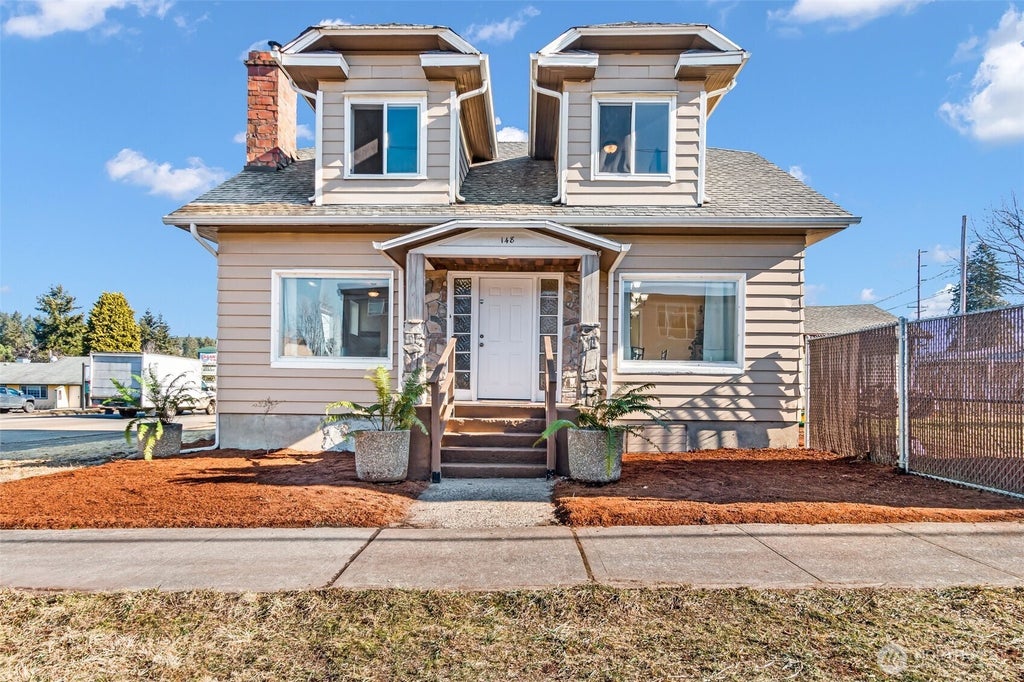 Gorgeous Craftsman style home w/tons of character on large fenced corner lot rich w/Tenino history! Originally built in 1924 w/imported hollow Italian brick preserved w/metal siding, home is walking distance to everything Tenino offers, schools/shops/parks/walking trail. Features include 3 bed/1.75 baths, living room w/woodstove insert, exposed original wood beams, two dining areas, and massive front/side windows for beautiful natural lighting. Plenty of room to park RV, alley access allows pull-through driveway. Extra storage in basement! Fenced backyard w/deck, cherry/plum/apple trees, fresh landscaping, XL garage. Signed book from builder's daughter included w/sale. City zoned C3 (OPPORTUNITY!), business sold separately w/out broker.