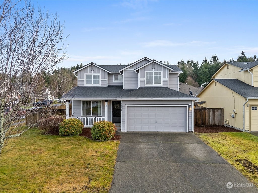 Welcome to this 3 bed 2.5 bath corner lot home in the Hillsboro Community of Puyallup's South Hill. A well cared for property is ready for you to move in. The main level features a formal living room at the front, & open Kitchen, dining, & family room to the rear. The slider opens to the level fully fenced back yard w/ patio & storage shed. Enjoy afternoon BBQ's & playing fetch with the dog. Upstairs you will find a primary bedroom with on suite and walk in closet. This room is big enough for a king size bed & furniture. You also have 2 extra bedrooms, a shared bathroom, & Laundry room upstairs for convenience. Gated entry, parks, & walking trails throughout the community. Shopping & restaurants all within minutes. SS appliances & cold A/C.