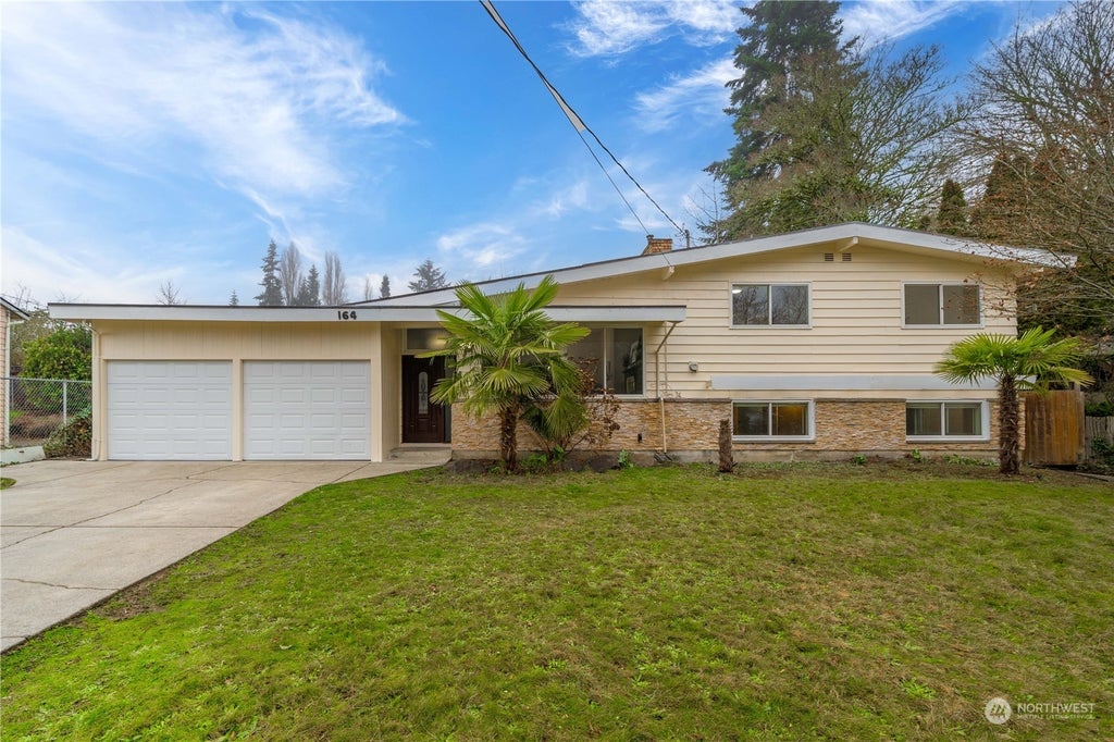 This 4-bedroom, 2.25-bathroom home is located in the peaceful Lake Hills neighborhood near Crossroads Mall. The living room features a fireplace, large windows, vaulted ceilings, and abundant natural light. The kitchen offers granite countertops, rich cabinetry, and SS appliances, w/ a slider leading to the covered deck and fully fenced backyard. Upstairs includes a primary bedroom w/ en suite bath, two add'l bedrooms, and another 3/4 bath. The lower level provides a fourth bedroom, a 3/4 bath, and two bonus rooms, ideal for a guest room or office. New exterior and interior paint throughout. Located in the Bellevue School District with easy access to freeways and amenities.