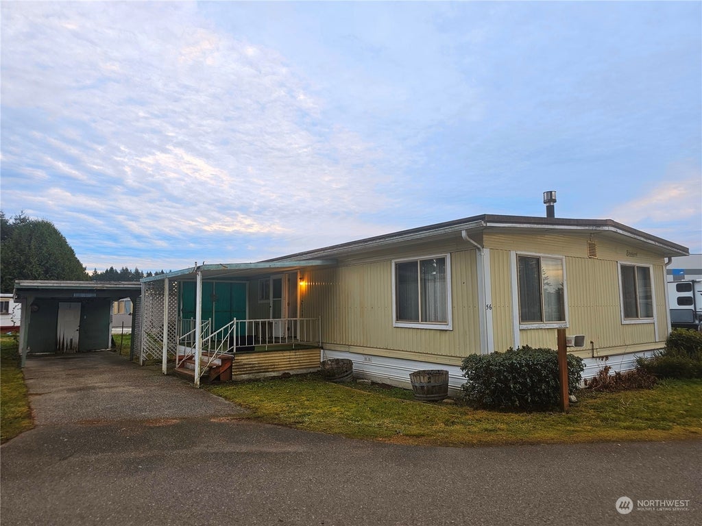 Spacious 3 bdrm/2 bath home in well-maintained park, super close to amenities such as schools & shopping! Space rent includes water & garbage. Laundry services are right across from this home, but home also has W/D hookups. Carport and driveway parking. This park welcomes all ages. All appliances are included with sale. Home is being sold "as-is".