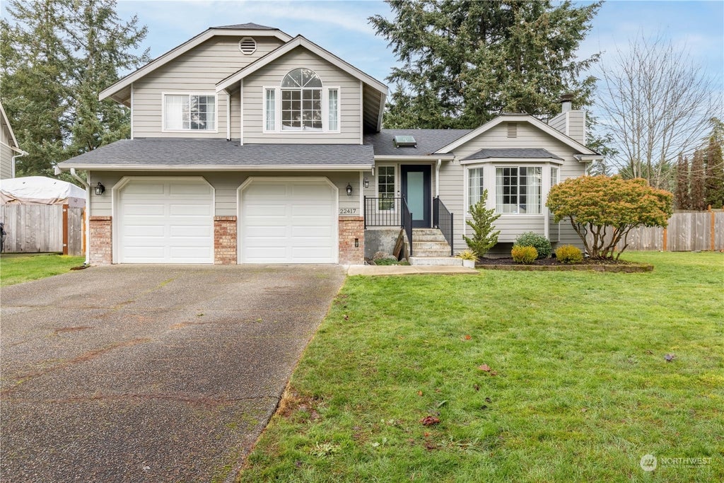 On an enormous corner lot in beautiful Bonney Lake sits this adorable tri-level home. The entry provides high ceilings and is filled with natural light. A picturesque bay window and fireplace make the living room an inviting space for guests to visit. The kitchen has modern upgrades: SS appliances and quartz counters, white cabinets and under cabinet lighting. Upstairs has 3 spacious bedrooms with a wide hallway for busy mornings. Downstairs is a generous sized family room with access to the back yard and patio. The exterior of the home offers not only strong curb appeal, but also newer Hardie Board siding and newer roof. This home is close enough to town to be convenient, but far enough out to experience the best the PNW has to offer.