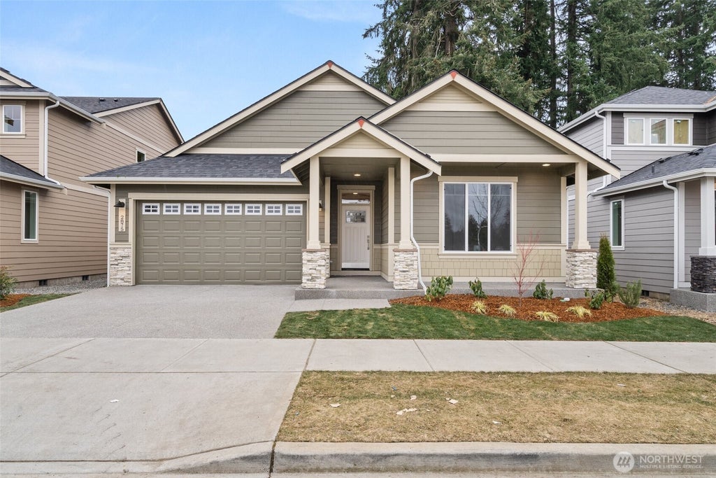 Discover Tumwater's Skyview Estates by local builder Rob Rice Homes where elegance and convenience meet! Rare single-level 3-bed/2-bath plan spans 1944 sf. Kitchen boasts quartz counters with full tile back splash, Maple "Cocoa" shaker cabinets, gas range, and opens to vaulted great room with fireplace. Entry, kitchen & dining feature engineered hardwood flooring, quartz counter tops throughout. Enjoy the outdoors on the covered patio, fully landscaped yard with privacy fencing! Energy-efficient features include solar panels, heat pump for heating/cooling, and electric hybrid hot water. Ideal location near Black Hills High, Costco, and quick I-5 access.