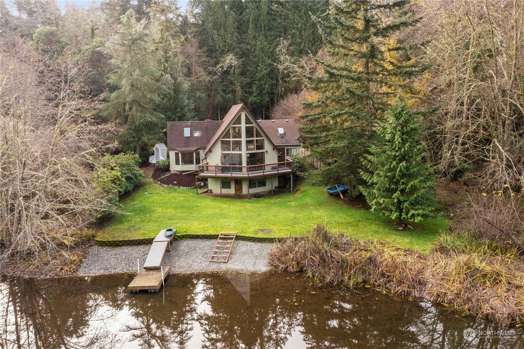Welcome to your private oasis on Anderson Island. A short ferry ride brings you to this beautiful chalet nestled in the trees w/ 83ft of waterfront on Lake Josephine. Spacious home features family rm w/ flr to ceiling windows capturing breathtaking views, gorgeous Acacia hardwds & propane FP for ambience & chilly winter nights. Custom kitchen. Main flr primary. Lower-level perfect for MIL suite w/ rec rm, wet bar, bdrm & 3/4 bth. Heat pump & A/C. Outside you’ll find a wraparound deck, access to the workshop & large yard w/ personal dock. Excellent location just steps away through the backyard trail to the Riviera Community Club tennis courts & playground & minutes away to the additional lake, restaurant & golf course. Enjoy the good life!
