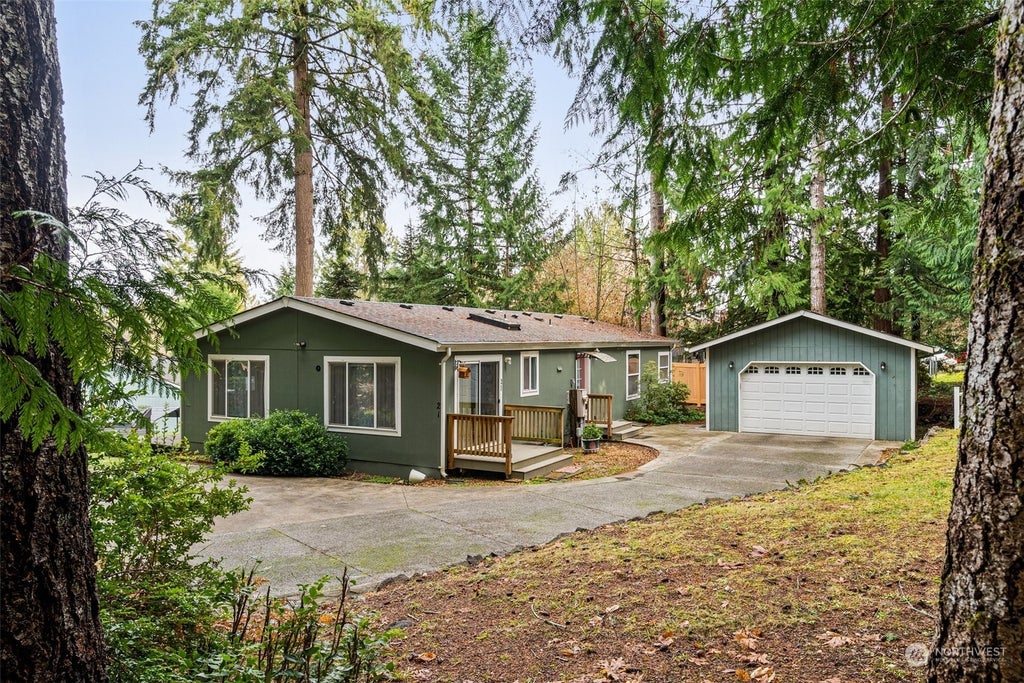 Enjoy the amenities of lake living! This super clean 2 bedroom with den, 2 bath home has a wonderful partial lake view in a gated community with private lake access & boat launch. Lifestyle amenities at Fawn Lake include fishing (stocked year round), kayaking, paddle boarding, tennis, basketball courts, parks, swimming, and more on this private serene lake community. The home has low maintenance landscaping, gutter guards, a spacious deck with lake view, gorgeous stamped and exposed aggregate concrete, as well as almost 400 sq feet of garage for your vehicle and workshop. Newer SS appliances stay! Remote control blinds in the living room are a fun feature, along with the high eat in bar. Spacious bedrooms and den. Move in ready!