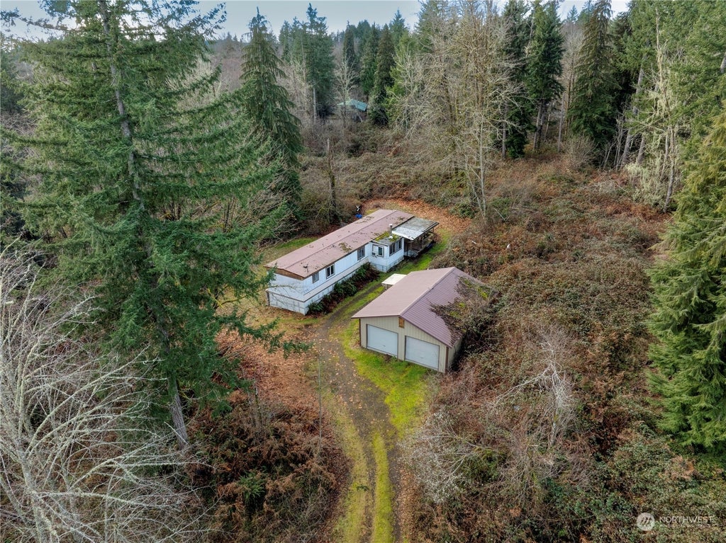 Quiet country living nestled amongst 3.26 acres. The possibilities are many. Single wide manufactured home with 2 bed/2baths and cozy wood stove. Step outside to find a MASSIVE 36'x30" detached shop equipped with power, plumbing and a full bathroom. In addition you will find a large detached garage equipped with power and concrete floors. Plenty of room for 6 vehicles and any toy you wish to store. Bring your imagination and hammer and turn this unique property into your dream retreat! Instead of buying land, buy a home where all utilities are on site with all the space you need in storage! Remodel the current home, bring in a new manufactured home or build a new home!