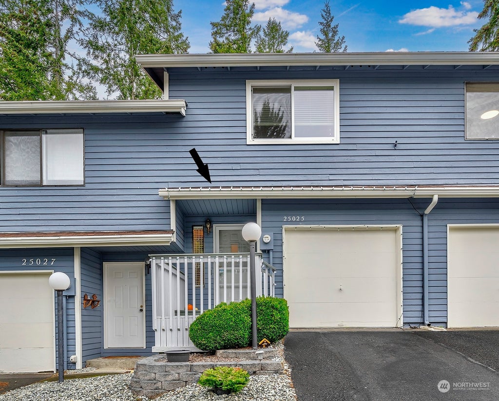 Immaculate, tastefully updated townhome w/ a new fully fenced, gated patio deck & backing to a greenbelt w/ a bit of golf course view. Light, cheery interior. Main level entry, kitchen w/ stainless appliances, new sink filter system & breakfast bar. Dining area w/a slider for deck access, a spacious living room & half bath. Upper level has two large bedrooms, primary w/ full bathroom, double closets & a peaceful outlook to the green belt. Second bedroom w/ nook area & a walk in closet. Full sized washer/dryer, included. Fully finished one car garage w/ driveway space for a second vehicle & plenty of guest parking. Newer flooring, six panel doors, interior paint, ceiling fans. Low maintenance landscaping. Close to freeways and shopping.