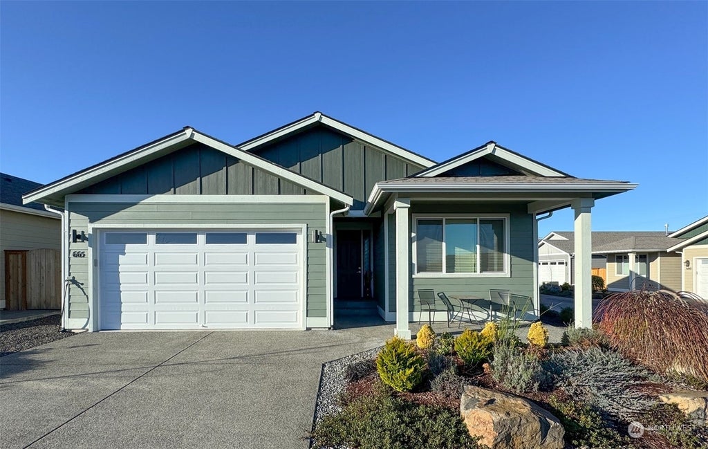 Prepare to be surprised by this beautiful home, perfectly situated along the Discovery Trail w/ glorious mountain views This property presents exceptional value, combining an ideal location with an array of premium features. Abundant natural light thru lg. windows & the spaciousness of 9ft ceilings.Expansive, covered patio serves as an outdoor retreat. The thoughtfully designed layout features separated bedrooms for optimal privacy.Primary ensuite boasts an elegant tiled shower with/safety enhancements & generous walk-in closet. Additional highlights include stylish vinyl plank flooring, a cozy propane fireplace, quartz countertops throughout, a walk-in pantry, and adj. under-cabinet lighting. Essence of contemporary living & move-in ready!
