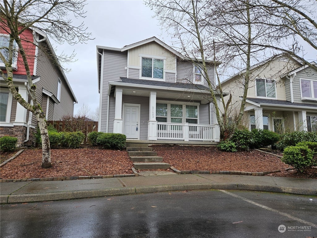 Welcome to this beautiful home in highly sought-after Creekside neighborhood! Located near a tranquil creek & walking/biking trails. Enjoy 3 spacious bedrooms upstairs; a large primary bedroom with 3/4 bath & walk-in closet. 2 additional bedrooms feature generously sized closets, offering plenty of storage space. Upstairs full bath in hallway, & additional half bath on main floor. Spacious Kitchen with island, a chef's dream! SS appliances, & rich hardwood cabinetry. Relax in large living room with cozy gas fireplace. Access the two-car garage through clean & well maintained alley. Fully fenced backyard. Close to I-5 freeway, 167, & SeaTac Airport. Come and See and experience Creekside living at its finest
