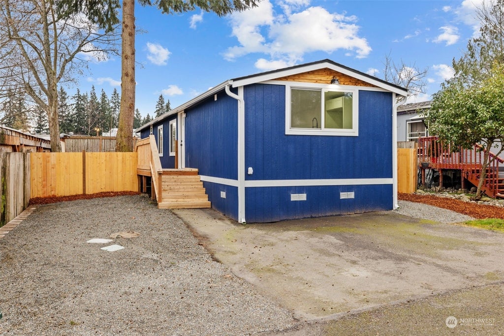 This beautifully updated 3-bedroom, 1-bathroom mobile home is located in an all-ages community and is ready for you to call home! With a brand-new roof, fresh siding, and a washer and dryer included, this home offers modern upgrades for comfort and convenience. Enjoy the privacy of a fully fenced yard and two dedicated parking spaces. Conveniently situated just minutes from shopping centers, restaurants, cafes, and schools. This home offers the perfect blend of accessibility and modern living. Don’t miss out on this affordable, move-in ready gem.