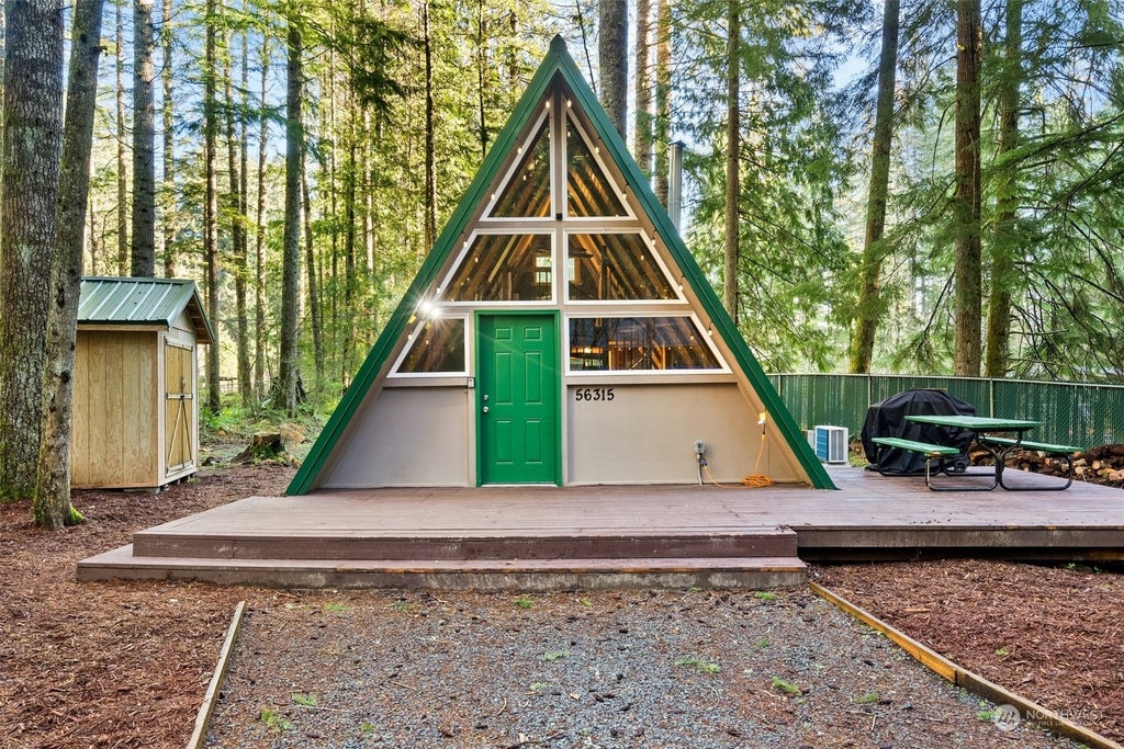 Nestled at the base of Mt. Rainier in the desirable Alpine Village neighborhood, this charming cabin offers a serene retreat for adventure seekers and A- frame enthusiasts alike. Designed to maximize its 600 sq ft, it features a cozy open layout with a loft bed, full bathroom, and classic A-frame architecture open living. Situated on a private corner lot, the property boasts a sprawling deck, a fenced backyard, and a firepit, creating the perfect blend of tranquility and outdoor living. Just steps from the river and world-class trails, this cabin is a gateway to endless adventure. With a proven history as a successful Airbnb, it’s an ideal mountain investment opportunity. Don’t miss your chance to own a slice of paradise near Mount Rainier!