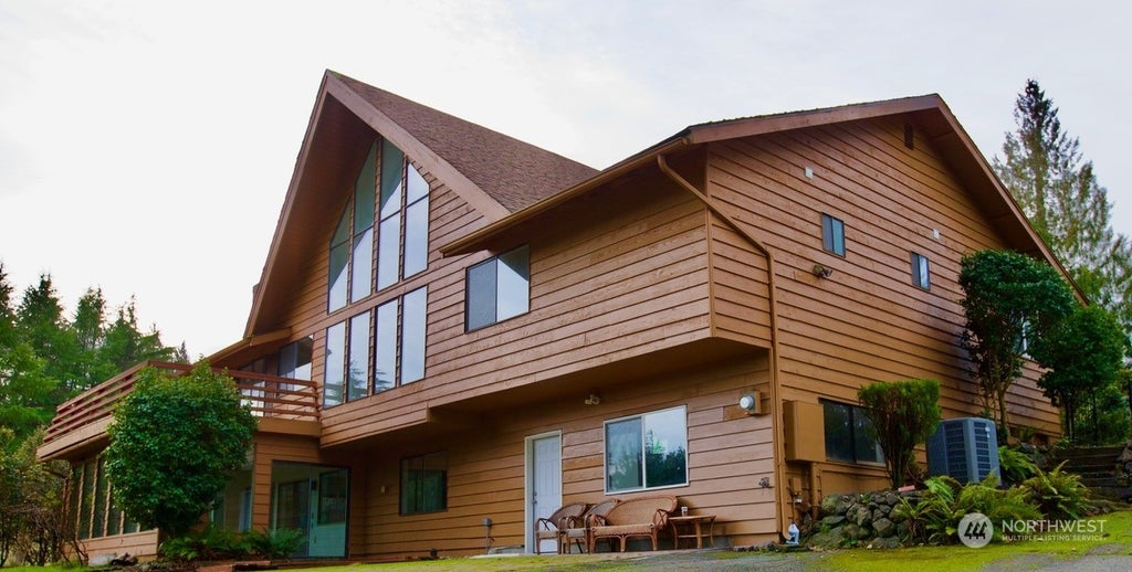 Private and Gated Home with Stunning Mt. Rainier Views! This spacious two-story home with finished daylight basement features a long driveway, summer garden, and breathtaking mountain views. The main floor includes vaulted ceilings, a primary suite with walk-in closet and ensuite, two bedrooms, a large bath, formal and informal dining rooms, a deck, a roomy kitchen, a laundry/utility room, and a half bath. The lower level offers a wet bar, enclosed patio/sunroom, family room, guest room, 3/4 bath, and ample storage. An upper finished loft. The expansive driveway accommodates plenty of guest parking, making it perfect for entertaining!