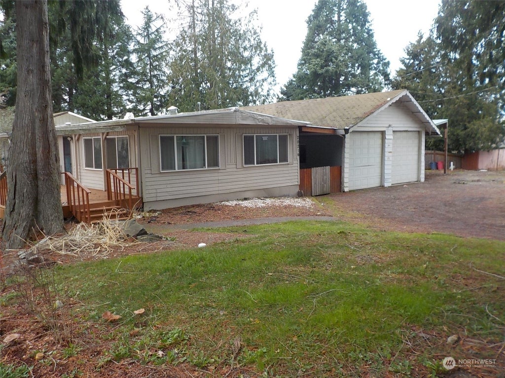 INVESTOR ALERT! 1972 Manufactured Home on its own land. 3 bedrooms & 1.75 bathrooms plus extra bonus room. This home has approximately 1,248 living space. Need storage? There's a huge detached garage for all your fun toys. To get from the home to the garage is a covered breezeway. Out the front door is a large deck for all your outdoor furniture & potted plants. This property has a great level lot surrounded by stick-built homes. The location is ideal with a short distance to Costco & other popular shopping/movie theaters. Unleash the potential on this beautiful flat property in Bonney Lake. The home needs lots of love or clear the land & build your dream home. Home has been a rental for the last 4 yrs. Will need cash or special financing.