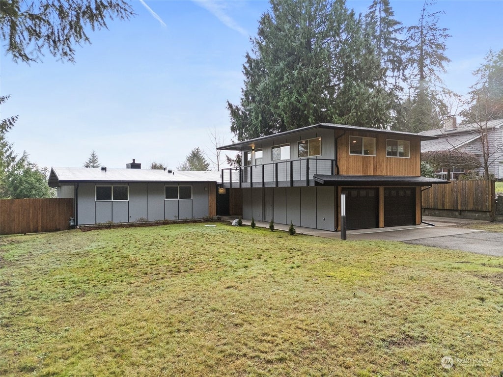 This stunning 3-bedroom,4-bath home blends mid-century modern charm with contemporary updates.Vaulted cedar plank ceilings create an inviting ambiance in the spacious living room,complete with an electric fireplace and access to a covered porch.The newly renovated kitchen features soft-close cabinets,stainless steel appliances, and opens to a large formal dining room,perfect for entertaining.The primary bedroom offers access to a private balcony overlooking a serene backyard oasis, while the second bedroom includes an ensuite bath.A versatile loft area is designed for an ADU, complete with its own kitchen, stove,and laundry room.The expansive, fully fenced yard includes RV parking and a heat pump for year-round comfort. Near JBLM and i-5!