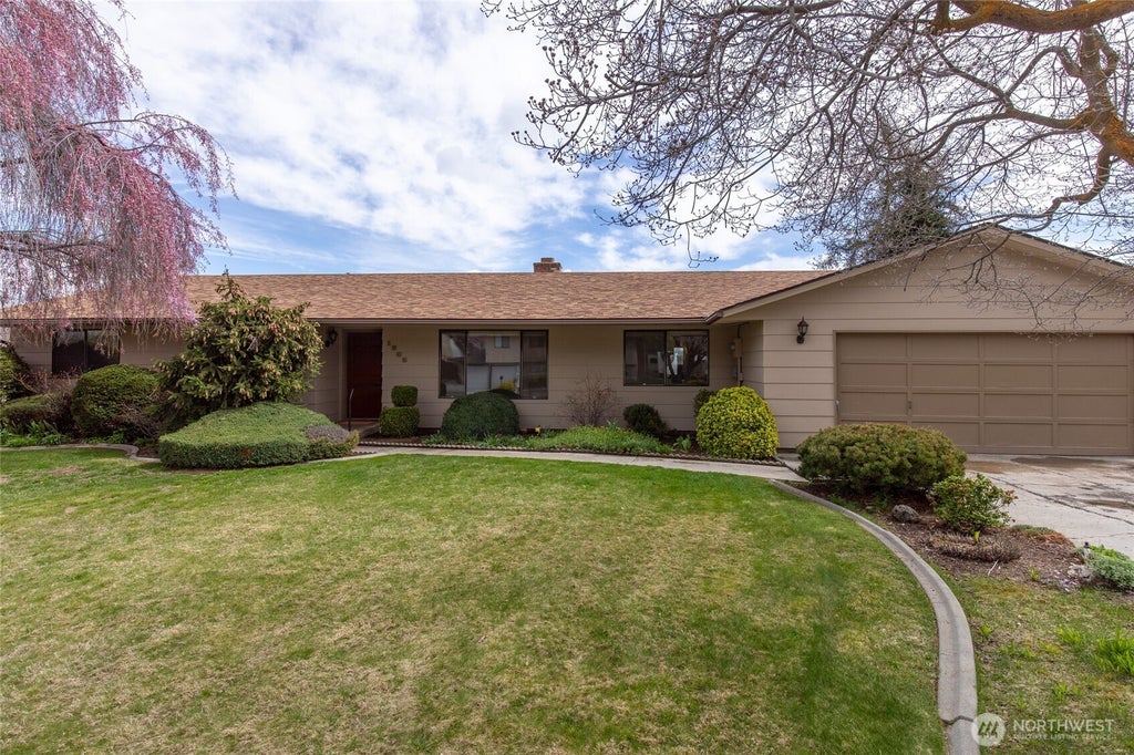 Take a second look, fresh updates such as counters and paint. Excellent location, close to the hospital in a neighborhood. Well established traditional landscaping. Room for extra parking in the wide driveway and large side yard. Elegant curved aggregate patio and huge garden spot in the back. Substantial living and dining rooms have picture windows and painted brick fireplace. Cozy family room leads to back patio. U-shaped kitchen opens to Family room. 4th bedroom also could be used as an office with powder room and is located in a private area of the home. Laundry/mud room leads to back yard and has a basin, closet, cabinets and spot large enough for freezer or second refrigerator. Bedrooms are spacious. Primary has two closets.