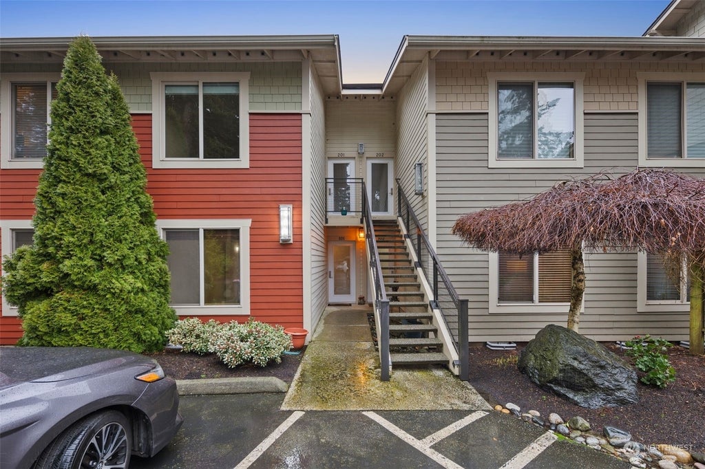 View Ridge Villas Condominium Unit D-101 features 2 bedrooms, 1 3/4 bathroom, 3/4 bath is primary bath. Located off Whistle Lake Rd. on Blue Heron Circle. Professionally managed complex, Unit 101 is a 1st floor no step entrance home. Added features, Stainless Dishwasher, Fridge, Micro, Oven & Stove Top. Granite counters plus Granite eating bar. NEW Washer & Dryer just installed. Interior rooms: Travertine tiled primary bath & shower, Living Rm. hardwood floor, quality cabinet space, dining table area, covered deck & Mount Baker & Fidalgo & Padilla Bay panoramic views. Condo dues $388.00 per month, Covered carport & storage. Pets allowed subject to CC& R's. End unit, lower level, yard, covered deck, carport, storage. So much to offer.