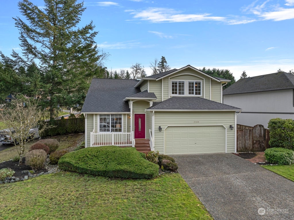 Move-in-ready Covington home! Sited on an oversized, sunny lot. Vaulted ceilings greet you. Excellent floor plan provides room for everyone. Beautifully updated. New LVP flooring on the main level. Chef's kitchen features ample workspace and all new stainless appliances. Family room off kitchen with cozy gas fireplace. New washer/dryer & hot water heater. 4 bedrooms upstairs. Spacious primary suite with ensuite bath and walk-in closet. Relax or entertain on the deck. Play-perfect, private backyard with plenty of room for gardening and all of your outdoor activities. Quick access to Hwy 18. Fantastic location close to shopping, dining, future Lakepointe Urban Village and more. Pre-inspected. Welcome home!