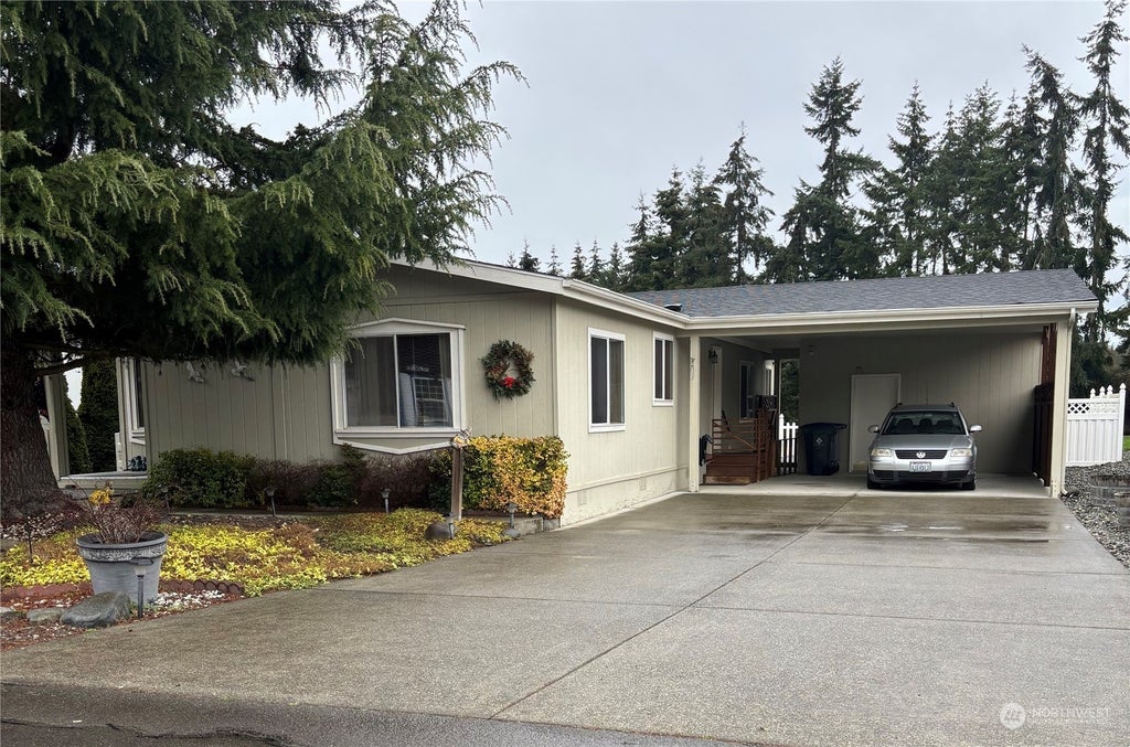 Immaculate 2 bedroom, 2 bath home with office home in the beautiful community of Parkland. Dining room with built in hutch. Open design with kitchen, dining room and living room for easy flow. Fully fenced back yard and adjacent to greenbelt. Forced air, wood stove, and newly added mini-split for all your heating and cooling. Roof reshingled in 2015. Club house with exercise room, library, close to shopping. 55+ community. Manager on site 5 days a week. Stroll along wooded paths.