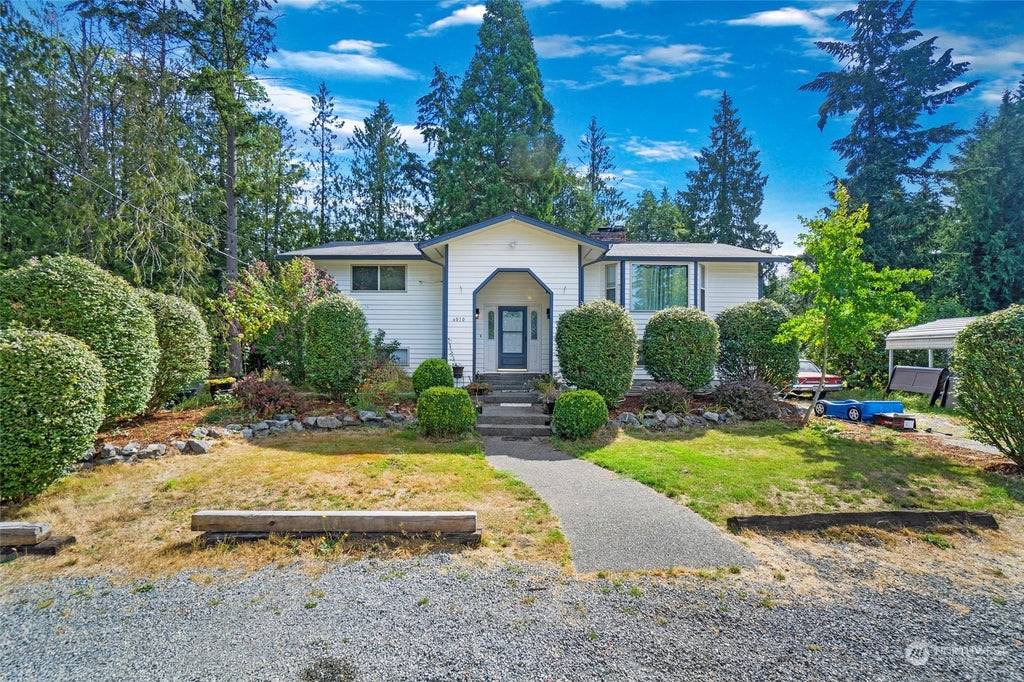 Charming split-level on .42 acre lot at end of quiet cul-de-sac. Main level open floor plan w/ living room, highlighted by gleaming hardwood floors & wood-burning fireplace. Dining area to big upper-level deck through sliding doors. Kitchen w/ skylight & ss appliances. This level includes 2 bedrooms & full bathroom. Lower level w/ versatile family room w/ another wood-burning fireplace & access to covered patio. 2 more bedrooms, full bathroom & laundry room w/ washer/dryer complete level, making it ideal for guests or extended living. Camera system with monitor stand for added security. Private backyard is surrounded by forest & shade trees w/ room for garden. Large carport. Rural living minutes away from restaurants, shopping & parks.