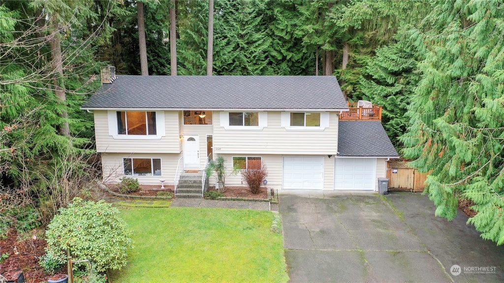[WELCOME HOME]Tranquil setting that makes you feel like you're living in a park w/ walking / nature trails. Tucked at the end of the street w/long driveway to this amazing home. Located in coveted Woodsound development of Picnic Point. First time offered since the day it was built. [ONE OWNER] Huge entertaining sized [1400 (+/-) sq. ft. multi-level] deck is an amazing space that brings the outdoors to you, great for year round enjoyment. Upper level w/ great room feel, open to kitchen w/ eating bar, granite counter top, stainless steel appliances, 4 Brms, 2.5 baths, family room w/ bar, 2 fireplaces, 2 car garage w/ workshop area, tons of parking & water/power RV or Boat. Wired for Hot Tub. This truly is amazing!
