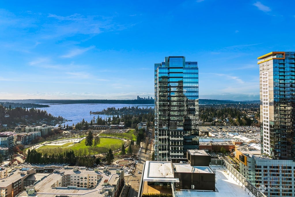 Enjoy incredible views of Lake Washington, Olympic Mountain & Downtown Bellevue from this 2BR/2.5BA home at Bellevue Towers. Highlights of this home include an expansive living/dining area, chef’s kitchen with Subzero/Wolf appliances, & new Quartz countertops. Large den perfect for a home office or media room! Enjoy automated shades, in-ceiling speakers, two balconies, & refinished white oak wood floors. 2 side by side parking spaces and garage storage are included. Walk to shopping, restaurants, Amazon, waterfront park and all the best of Bellevue. Newly remodeled amenities include spa, 2 gyms, concierge, theater, ½-arce garden & lobby!