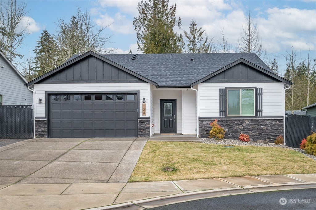 Beautiful one owner home! This one level 1,510 square foot home features 3 bedrooms & 2 bathrooms. Spacious great room with stone fireplace (propane). Primary bedroom with attached bathroom with tile shower and walk-in closet. Interior finishes include craftsman style painted millwork, alder cabinets & LVP. Kitchen with island, slab granite & stainless appliances. Dining area with door to covered patio. Fully fenced yard with sprinklers & landscaping! Attached 2 car garage. Gated for small RV or boat. Great location, convenient to outdoor recreation! Make your appointment today!