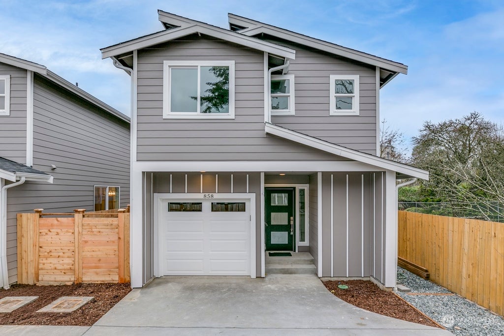 Beautiful new construction in such a convenient location! The main floor living room is open to the kitchen, perfect for cozy times at home. A half bath and storage pantry complete the area. Upstairs you'll find a bedroom and bath, along with the washer and dryer for your convenience. The Primary bedrooms is en-suite, complete with a full bath with porcelain tile floors, and walk-in closet! The garage features an electric car charging outlet. A small, low maintenance yard for your bbq or patio furniture. Located right across from Chelsea Park and only steps away from the bus line on Ambaum, this house is situated beautifully for a commuter! Easygoing HOA. Rentals and pets allowed.