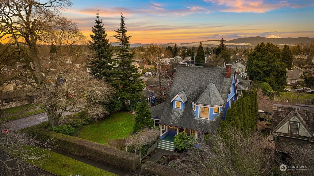 The Knight Home is one of the crown jewels of the historic Columbia neighborhood. This stately home sits on a double lot with a huge yard, with potential to add a detached ADU. A large entry foyer with gorgeous staircase welcomes you inside. Inviting family room with wood fireplace is flooded with natural light. Living room with gas FP flows to a large formal dining room with leaded cabinets. Big covered deck for year round outdoor living. Beautiful oak floors. All bedrooms have good closets. Laundry / craft room could be converted to a 5th BR. Primary suite has full bathroom, walk-in closet and balcony with bay and mountain views. Detached garage with adjacent RV parking plus a shop / storage shed off the alley. This is a rare opportunity.