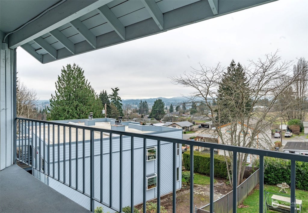 Top floor, end unit with expansive South and West views. Large kitchen with generous storage, convection oven, eating space and panoramic mountain views. Private west facing balcony with storage closet. Large living room with wood-burning fireplace. Den could easily be converted to a 3rd bedroom. Primary suite with 5 piece private bath, including a large jetted soaking tub. Laundry in unit with included stacked WD. Unit upgrades include flooring, hot water heater, electrical panel and thermal paned windows. HOA dues include water, sewer, garbage, building insurance, landscaping and exterior maintenance. Complex is majority owner occupied. Some pet restrictions (# and size) apply. Second storage space in adjacent building.