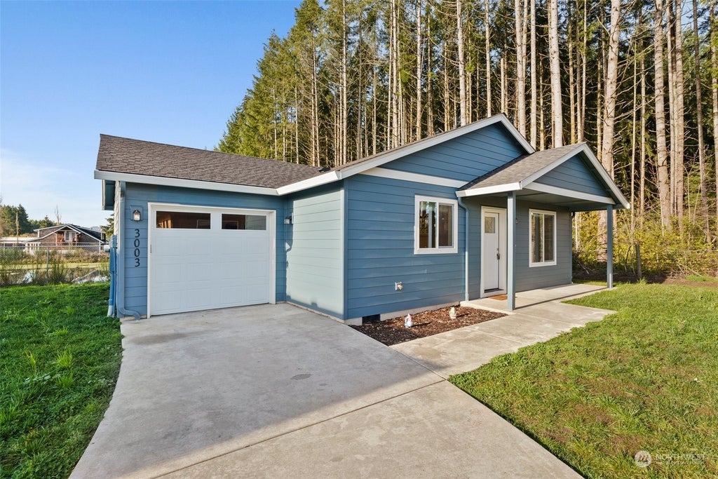 Newly built in 2023, this quality one-level home offers modern comfort in a growing community just minutes from I-5. Featuring 3 bedrooms and 2 full baths, the home includes a spacious primary suite with a private bathroom. The open-concept kitchen and living area showcases quartz countertops, stainless steel appliances, a pantry, and a versatile island. Additional highlights include a dedicated laundry/utility room and a one-car garage. Enjoy added privacy with no neighboring homes directly behind or to the side, thanks to the serene forest and adjacent storm pond. Conveniently located in Winlock, halfway between Portland and Olympia.