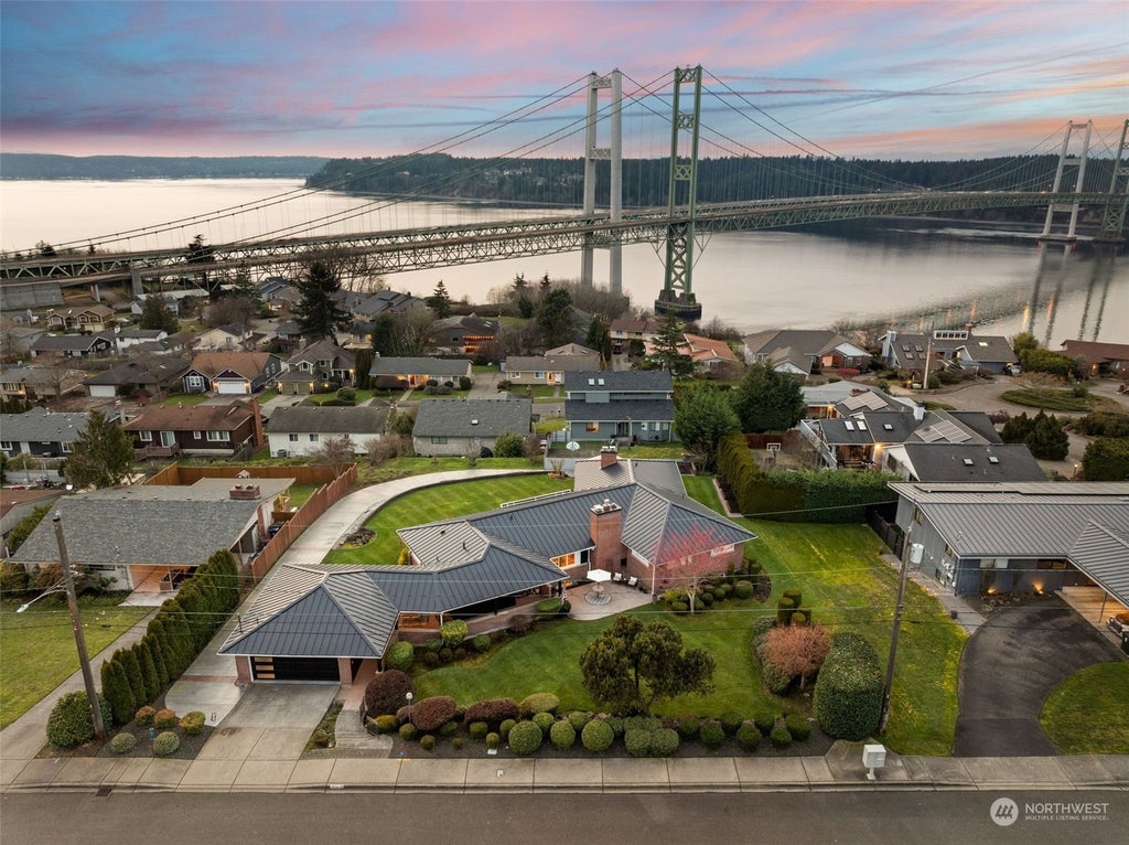 An entertainer's dream home perched on Tacoma's West slope, offering breathtaking panoramic views. This stunning custom-designed property is set on an oversized lot and features both an upper and lower garage, along with a separate ADU for potential rental income, multi-generational living or private guest accommodations. The ADU, stairwell, and basement boasts elegant updates that seamlessly blend modern conveniences with the preservation of the home's original architectural charm. This exceptional home invites you to embrace the enchantment of the 1950's architecture while enjoying breaktaking, million dollar views.