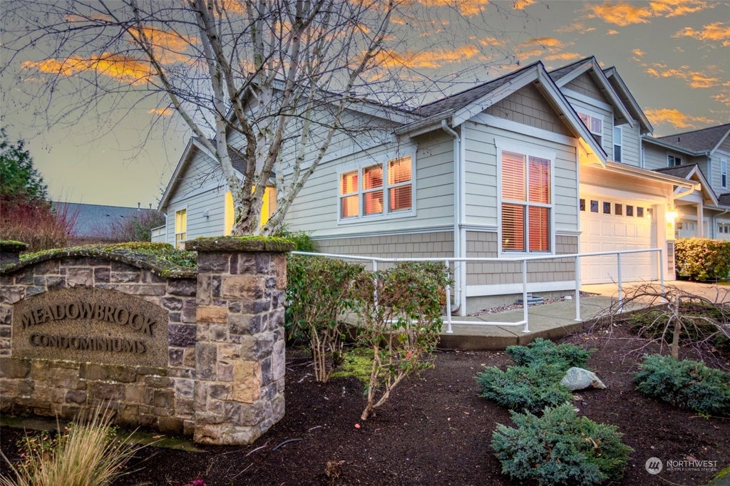 Easy one level living with ZERO steps in this 55+ Meadowbrook complex that has a private clubhouse and library! Sunny, corner unit has loads of privacy as it backs up to a Greenbelt. The immaculate condo has 2 bedrooms, 2 baths, plus a large bonus room over 2 car attached garage for plenty of storage. Garage has EV charging station too! Open concept living with a spacious kitchen boasting granite counters & stainless-steel appliances. This condo features high end custom window coverings, hardwood, tile and LVP floors. Bright open floor plan with handicap specs, vaulted ceilings, gas fireplace. Near walking trails, parks, bus stop, shops, restaurants and medical facilities. Won't last long!
