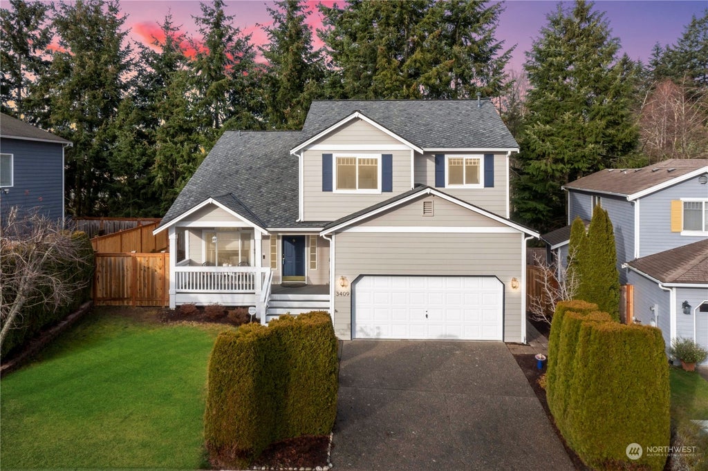 Welcome to this beautifully maintained and thoughtfully updated home in the desirable Northshore Country Club Estates. This stunning property offers 4 beds, 2.5 baths, and an open floor plan designed for comfortable living and entertaining. Vaulted ceilings in the living room, and breathtaking views of Mt. Rainier. The main floor features hardwood laminate flooring, The remodeled 5-piece en-suite primary bathroom includes a soaking tub and walk-in closet. Additional updates include a new roof, partial siding, a water heater, and much more. Outside, the backyard offers low-maintenance landscaping with a private greenbelt. Conveniently located within walking distance to the Norpoint Center. This move-in-ready gem is truly a must-see!