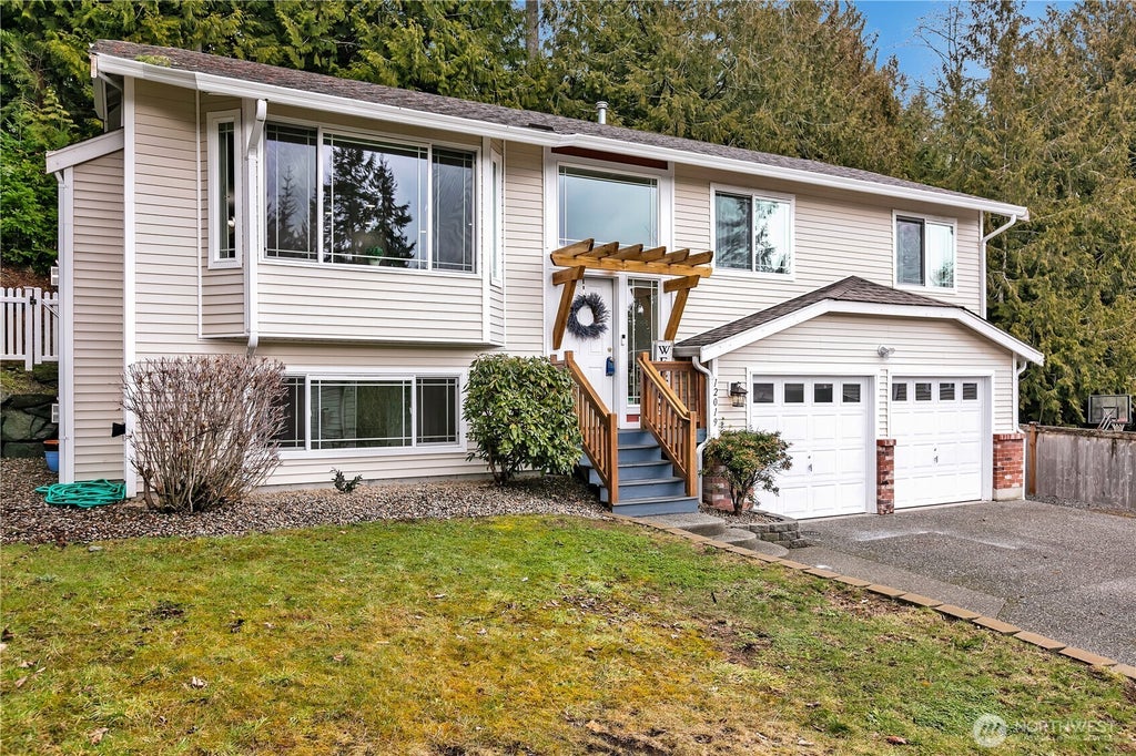 Step in to this classic bright and spacious split level home. This lovingly maintained home is tucked at the back of a quiet cul-de-sac in the desired Ridgetop neighborhood. Main floor welcomes you with a charming living space and cozy gas fireplace, updated kitchen equipped with new high-end SS appliances, spacious island and sleek backsplash. You'll also find the primary suite with an updated bathroom, two more generous size bedrooms and a full bath. Downstairs you'll enjoy a versatile large bonus area with another gas fireplace , utility room with 1/2 bath & a two car garage with tons of storage space. This home offers both comfort & sophistication in an unbeatable location close to schools & all amenities you'll desire! Welcome home!
