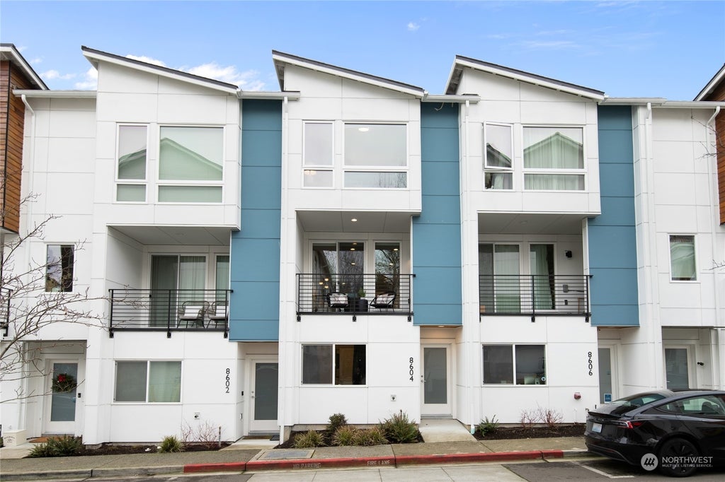 Completely refreshed townhome with new paint, offers a flexible lower level with a bedroom and bathroom, ideal for guests or a home office. The spacious main level features a modern kitchen with stainless steel appliances, a gas range, quartz countertops, and a stylish glass tile backsplash. Upstairs, you'll find two en-suite bedrooms, providing privacy and comfort. Enjoy outdoor living on the generous covered deck, and take advantage of the extra-wide one-car garage. Located conveniently close to major commuter routes and public transportation.