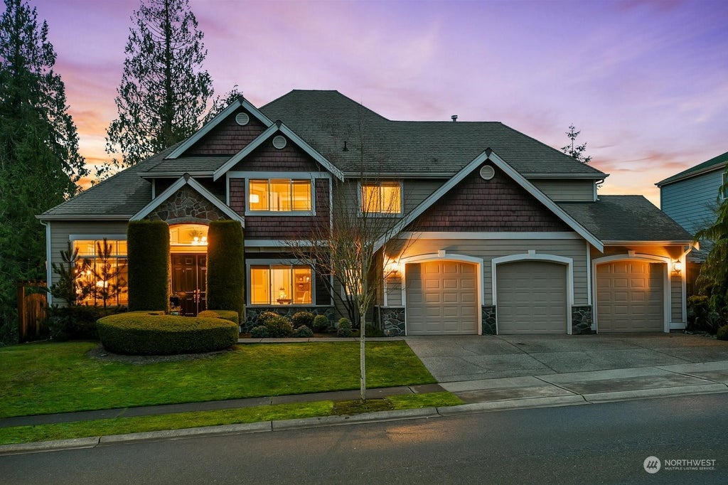 This stunning estate-style home lives large, with all four spacious bedrooms and a versatile bonus room on the second floor. The primary suite is a true retreat with sweeping views of the majestic Cascades, while the bonus room also boasts breathtaking mountain vistas, perfect for relaxation or entertainment. The chef's kitchen is a culinary dream, featuring refreshed interior paint, new carpet, and luxury vinyl plank flooring throughout. A three-car wide garage offers ample storage and convenience, along with a garden shed The expansive 11,000 sqft lot includes a fully fenced backyard with generous patio space, ideal for outdoor gatherings. A greenbelt on the west side enhances privacy, creating a serene retreat where nature meets luxury.