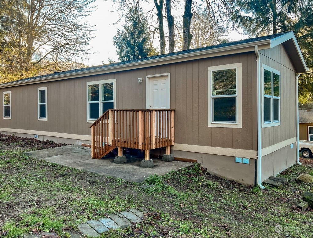 Brand New 2023, never-before lived in manufactured home in the beautiful Pleasant Valley Manor Mobile Home Park. Gorgeous mature fir trees and rolling hills surround the homes in this all-ages park with a low space rent of only $750 per month! Spacious kitchen with dine-in option and snack bar. Open floor plan with great natural light. All double-paned windows throughout the home have pull-down cordless blinds. Ecobee thermostat provides precise heating. Minutes to Costco, Trader Joe's and many other shops, restaurants, hospital and Lake Meridian Park. Easy access to highways.