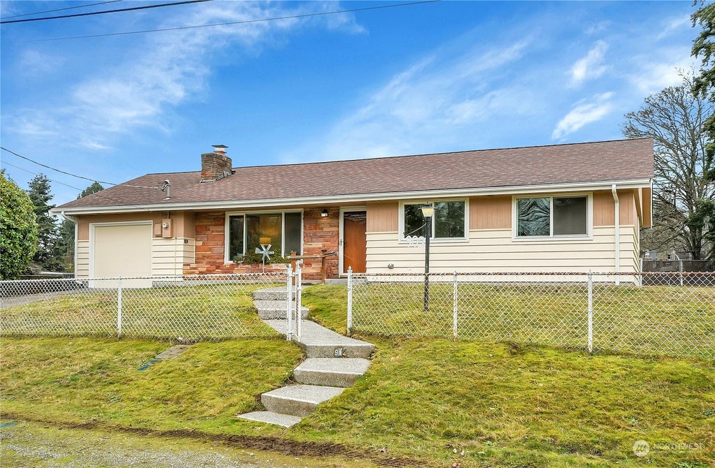 This inviting & very attractive mid-century home possess great curb appeal & shows beautifully. The living room features a lovely mantled & stone fireplace. True formal dining room w/ built-ins. Cheerful vintage kitchen & breakfast nook. Lovely remodeled full bath. 2nd 3/4 bath off of kitchen. Knotty pine bonus room above the garage is a perfect playroom. Stunning Swedish finish hardwood floors run throughout the main level. Pleasant patio opens to the spacious, partially fenced grounds. Unfinished lower level presents a shop & storage area. Heat pump & Air Conditioning! Thermopane windows throughout. Earthquake retrofitted! Situated in a lovely pride of ownership neighborhood. Close to schools, shopping & transportation. Truly lovely home!
