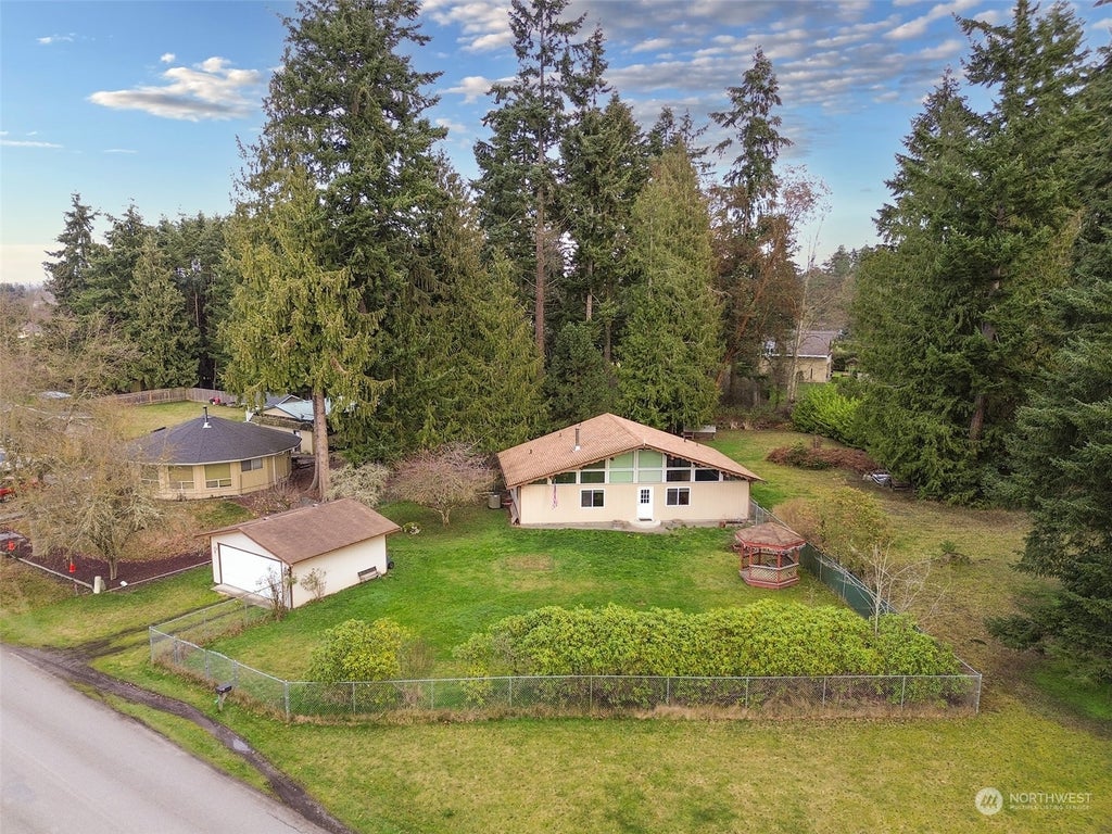 Completely fenced front yard. This 3 bedroom, 2 bathroom home has 1,704 sq ft with beautiful wood interior walls and ceilings and a two car garage. It is spacious with a loft perfect for an office, tv room, or family room that looks over the living room. The living room has a wood burning stove to keep you warm and cozy along with the furnace and heat pump. On over a half acre, there is plenty of space for gardening and landscaping - 1 apple, 2 cherry, and 2 plum trees. Nice location just across from Lake Solmar and next to a community park. Also near Robin Hill Park (3.4 miles of foot trails & 2.5 miles of equestrian trails) and the Olympic Discovery Trail. Solmar Water is $30 a month and the Solmar HOA is only $50 a year.