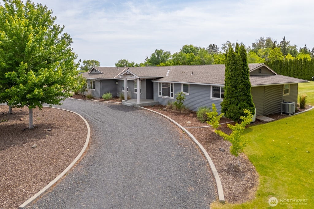 This stunning 4-bedroom rambler offers the perfect blend of modern comfort and country charm. Enjoy an open floor plan with hardwood floors, a warm and inviting living room with a fireplace, and a gourmet kitchen featuring a spacious island. Flex room with closet could be used as a 4th bedroom. There are two primary suites, including one with heated bathroom floors and dual walk-in closets. Guest house with 1 bedroom, full bath provides additional 1,152' of living space and loads of storage, while the 2,160' shop with lean-to and pasture offer a second lean-to are ideal for equestrian or hobby farmers. Located on 4 acres with irrigation. Plenty of mature trees, this tranquil oasis is a 5 minute drive to the famous shores of Soap Lake.