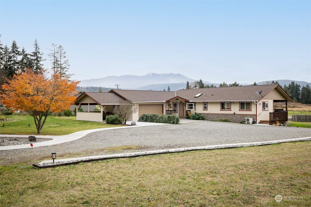 One owner custom built home in desirable Happy Valley. One level on acreage with outstanding views of Sequim’s famous sunsets, water and mountains. Home is spacious with 3 bedrooms and 2.5 baths, plenty of windows and a skylight for additional natural light. Open floor plan with updated kitchen boasting stainless steel appliances, granite tile countertops, a large island and the stove/oven facing the views to the West. Primary bedroom also has a Western view, a spacious walk in closet and the bathroom features handmade Italian tile. All exterior doors have retractable screen doors to let the breeze and fresh air come through. Laundry / mud room from garage includes a utility sink and included washer and dryer.