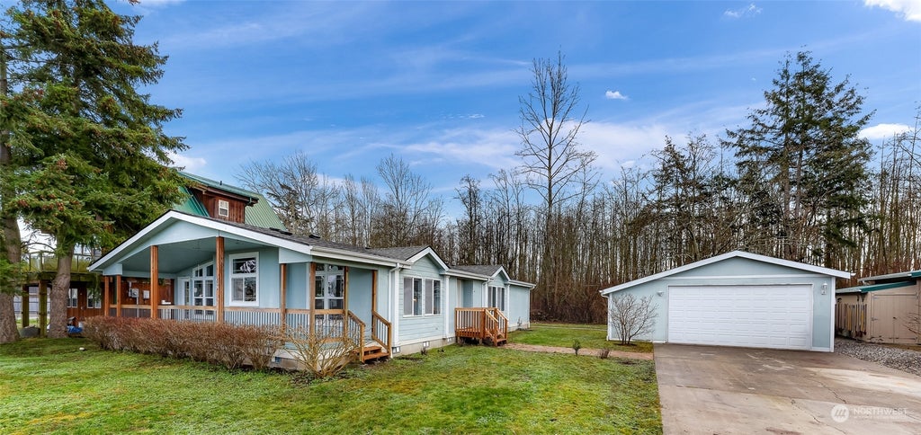 Sunset Drive in popular Birch Bay Neighborhood. Triple wide home on 2 lots, creating a great value should you want to add a second home. Home is spacious with an amazing kitchen, with lots of storage, walk-in pantry, and eating bar. All bedrooms are large, especially the primary, which feature a walk-in closet and spacious bathroom. There is a gas fireplace in the living room and a covered deck off the living room, which has a view of the waters of Birch Bay. The detached garage fits 2 vehicles comfortably and has an area for a small workspace. Across the street is a walking path, which will take you to the beach in about 5 minutes. You are just minutes from the State Park and hub of busy Birch Bay featuring fine dining and entertainment.