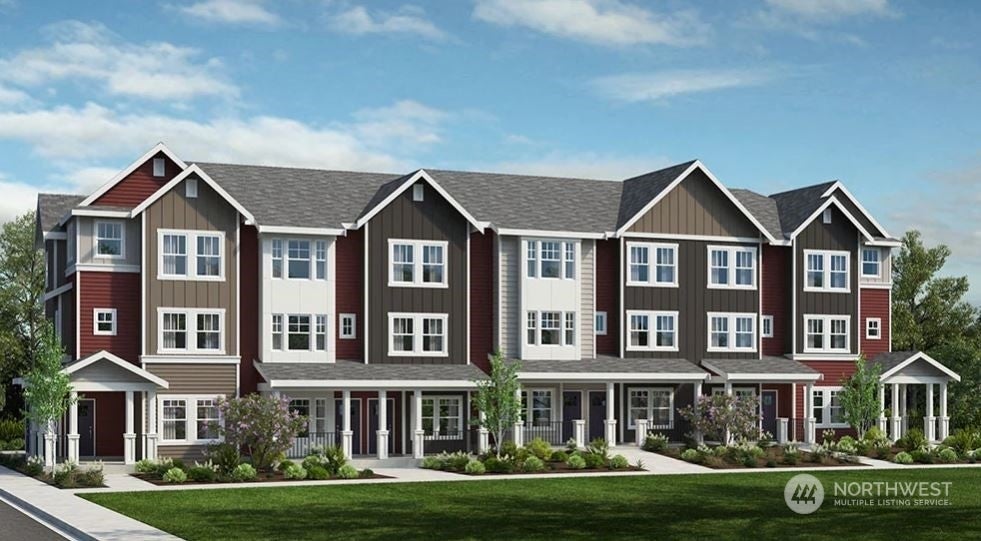 MLS# REPRESENTATIVE PHOTOS. July Completion - The E1H is a delightful 2-bedroom townhome with a 1-car garage, part of a new construction community by Taylor Morrison. The lower level offers a cozy den and a convenient powder room. On the main level, you'll find a spacious living room that opens to a large, covered deck, perfect for relaxing or entertaining, along with a well-designed kitchen and dining room. The upper level boasts a primary bedroom with an ensuite bathroom featuring a dual vanity, a second bedroom, a guest bathroom, and a conveniently located washer and dryer. Builder broker registration policy requires, if represented, your broker register you with Community Site agent prior to OR with you, on your 1st visit.