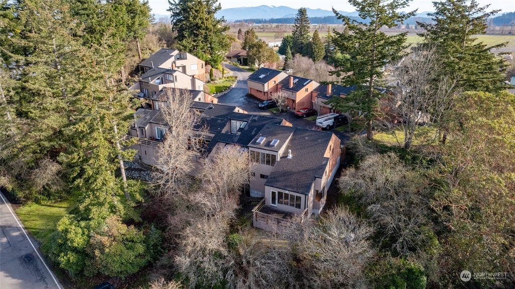 Location x3. Private. Hip. Say hello to this must-see condo in the highly-desired Rockside condominium community! Built in 1979, this end unit beams 70's inspired ambience with modern flair. A combination that was, and in its own eclectic way, still ahead of its time. Featuring 2 second-level bedrooms, 1.5 baths (main level half bath), soaring ceilings, living room with a gas fireplace, comfortably-sized kitchen, main floor office/flex space, upstairs laundry, window seats, an uber-enchanting (private) pocket garden, deck and patio area, a single car garage, peekaboo views of the iconic Rainbow Bridge. Walkable to all charmed things that make historic La Conner vibrant: shops, restaurants, the channel & boardwalk, Pioneer Park.