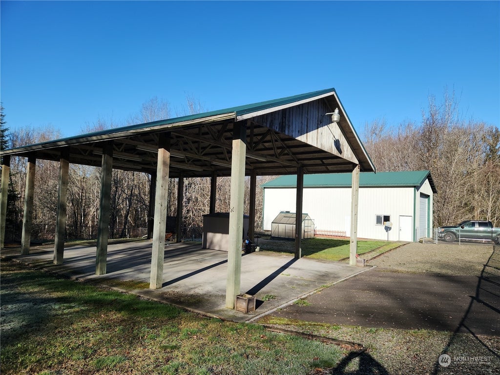 This 3.140 acres of property is located in a quiet location off E Agate Loop Rd. On a shared well, 3 bed septic system, electricity in shop, propane hook up in the large shop if you wanted heat, draingage system in floor for easy cleanup, large enough for an RV and a vehicle, greenhouse, garden space. It also features additional covered/paved parking for another RV or vehicles, with hook up to the septic. Industrial door installed w/remote. Fully fenced on part of the property. This is an excellent property for storage or use as a recreational site when you wish to get away from city life or plenty of room to build a home also. Past owner was going to convert the open/covered RV space to a home before he sold to the existing owner.