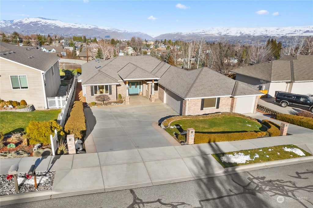 A true one level rambler has level entry, heated driveway and panoramic view of valley and foothils. Spacious light filled vaulted great room with updated gas fireplace & custom wood ceiling which carries through to the northern, beamed, covered patio. Show-stopping kitchen has ample counter space space & island with large prep sink. Luxurious master suite with top level amenities; jetted tub, dual vanities and French doors that open to the patio. You will love all the living space that extends to the outdoor living. Jack and jill bath between additional bedrooms plus double doors to a perfect, bright office. Laundry includes sidedoor to exterior and a shower. Triple garage has an extra deep bay to the east, total garage is 1,017 sq. ft.